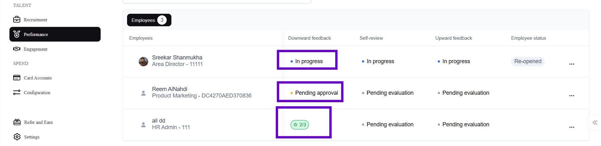 - When the primary evaluator submits the employee evaluation, it will not be immediately shared with the employee. Instead, it will go through the defined approval cycle.