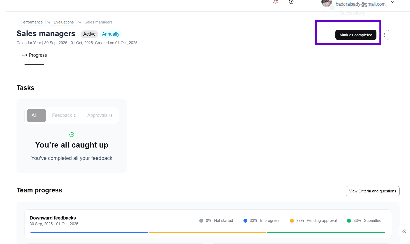 - The employee will receive an email notification informing them that their evaluation has been submitted.