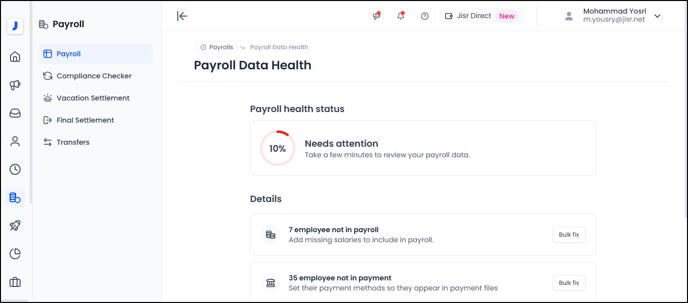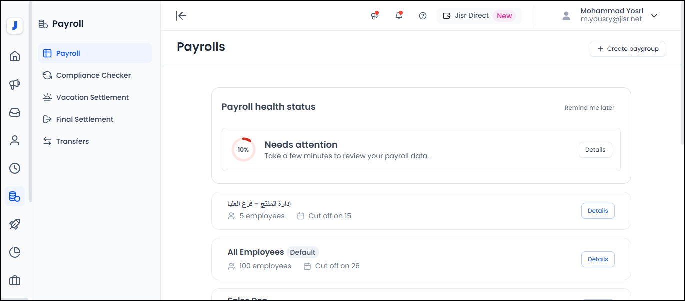 The Jisr system provides clarity on the status of payroll processes in the system for both the system admin, the payroll supervisor, and those with payroll authority. This allows them to review payroll data and determine which data remains to be entered or is incomplete.