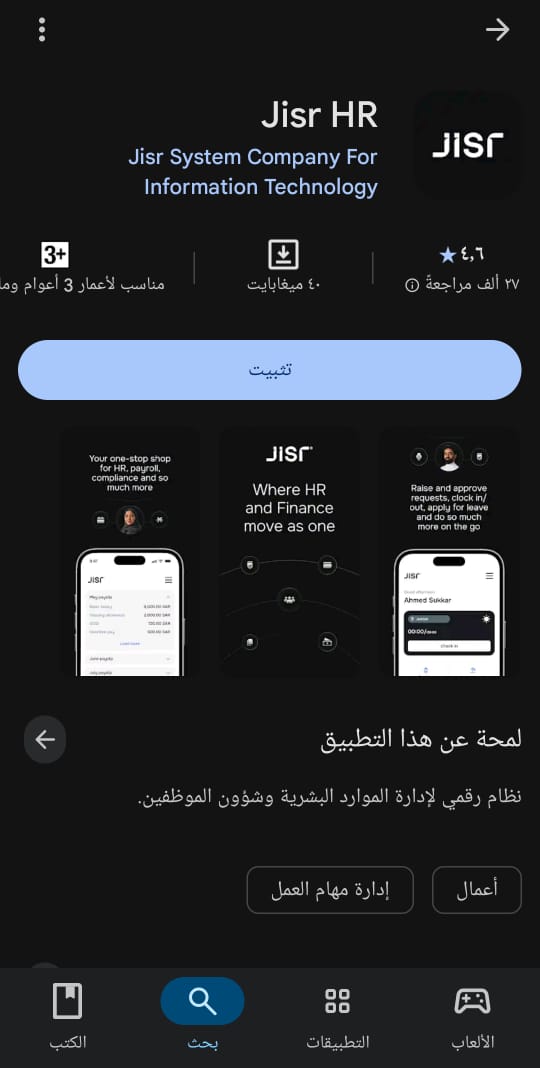 2. Through the app store by searching for "Jisr" or "JisrHR"