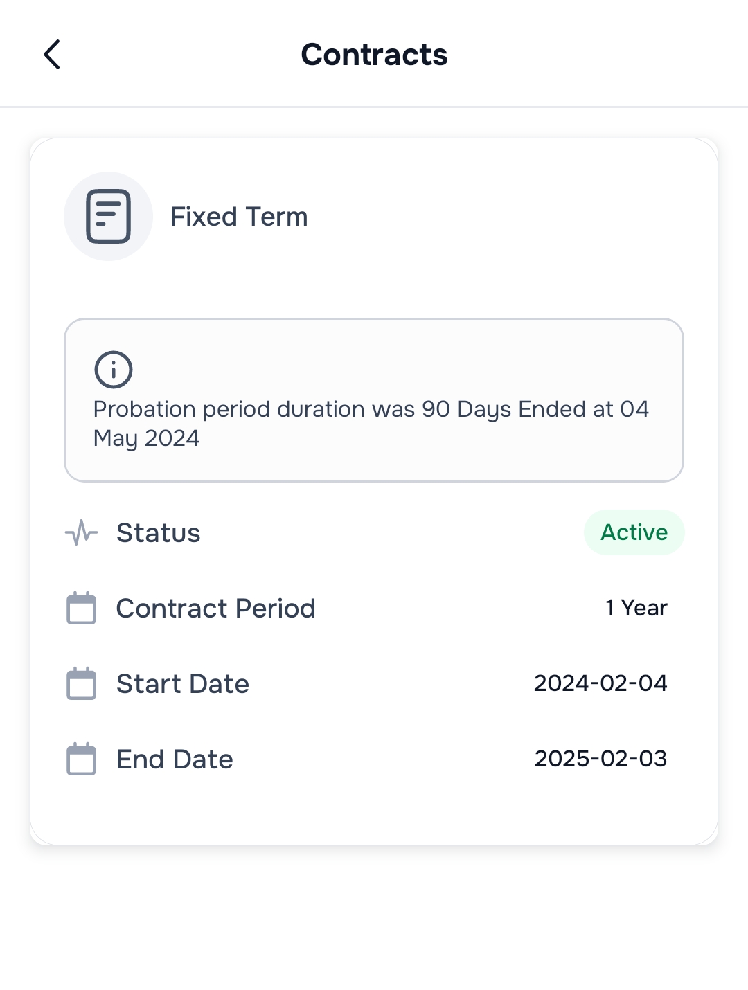 From the "Contracts" tab, you can view contract details such as: contract duration and contract start and end dates.