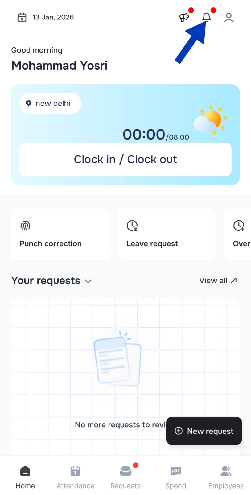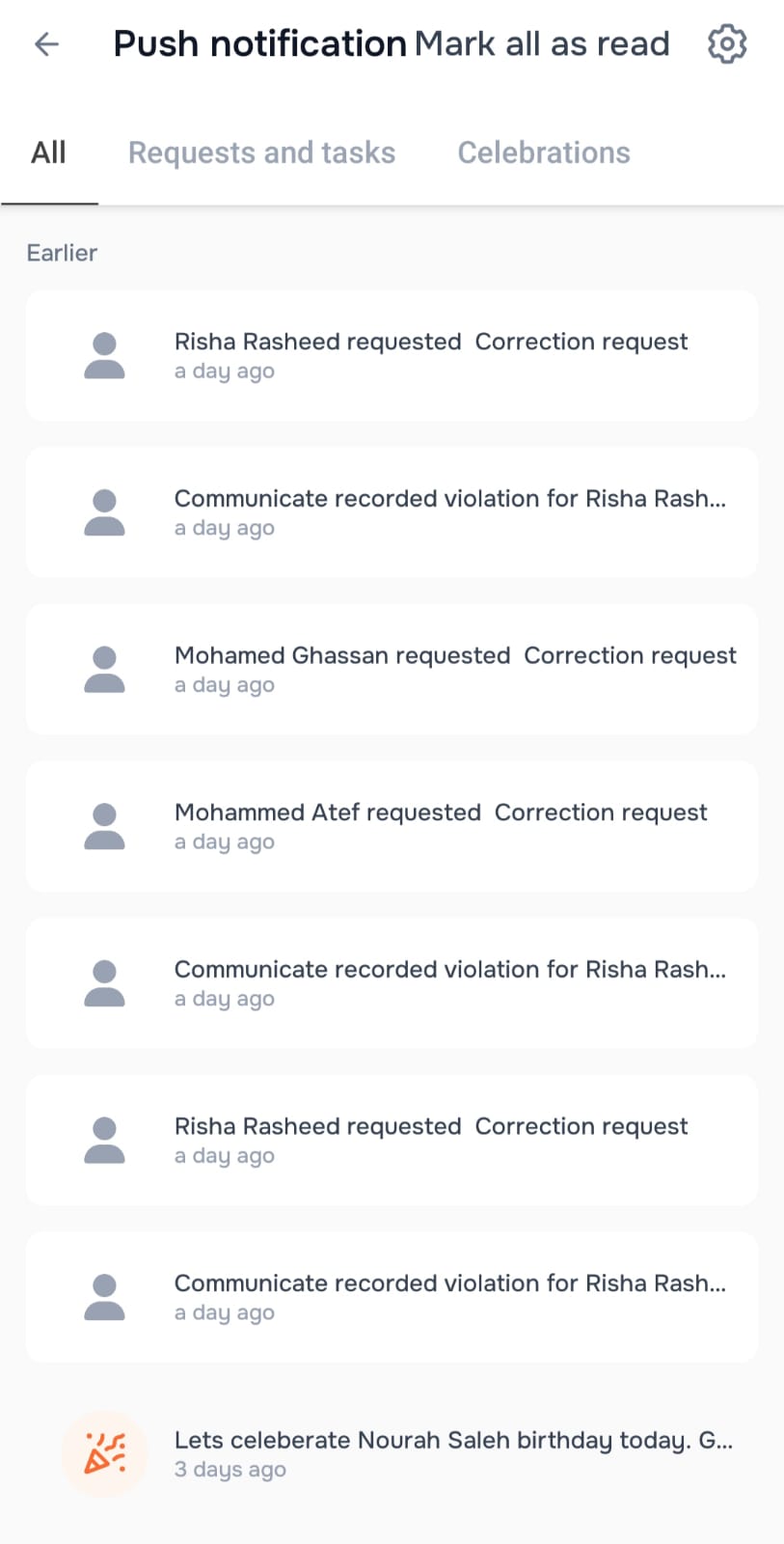 He can see the type of notification if it is related to the requests and tasks of team members, or a celebration of a specific occasion.