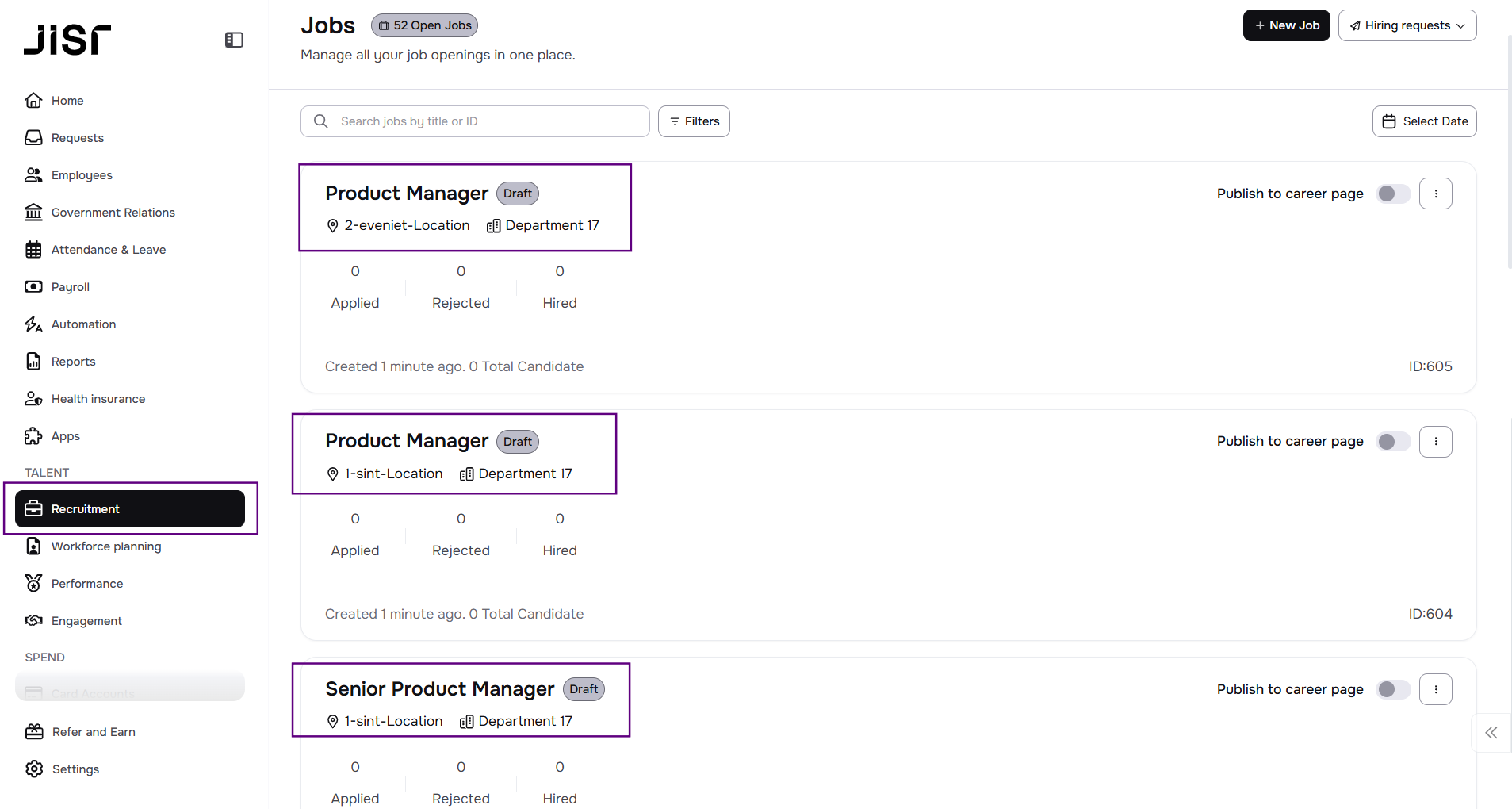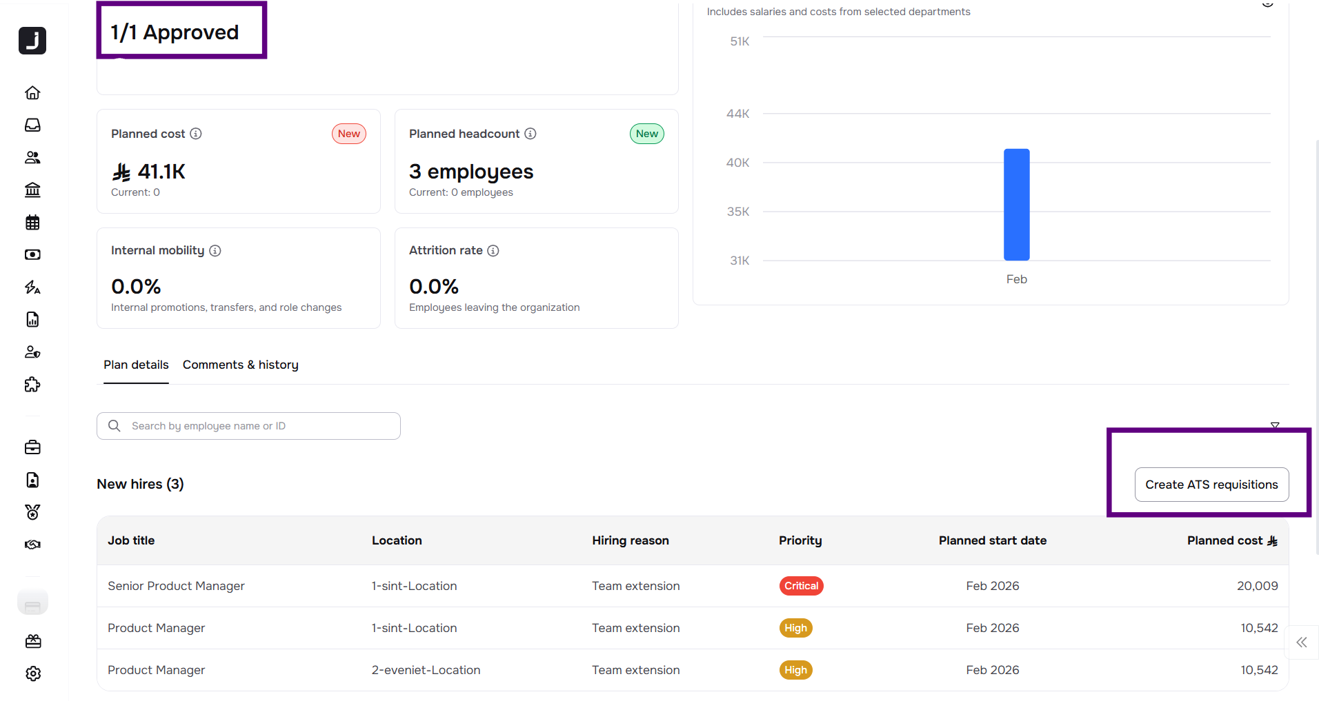 - By clicking this button, all approved new hire positions from the workforce plan will be automatically reflected in Jisr ATS.