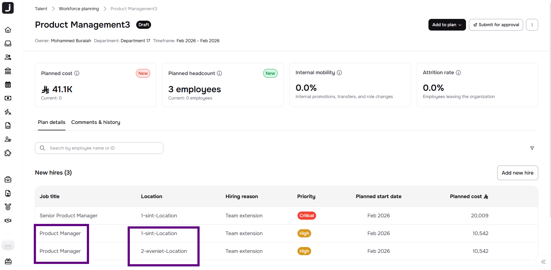 EXAMPLE: Let’s say you’re planning new hires for the Product Management team:
