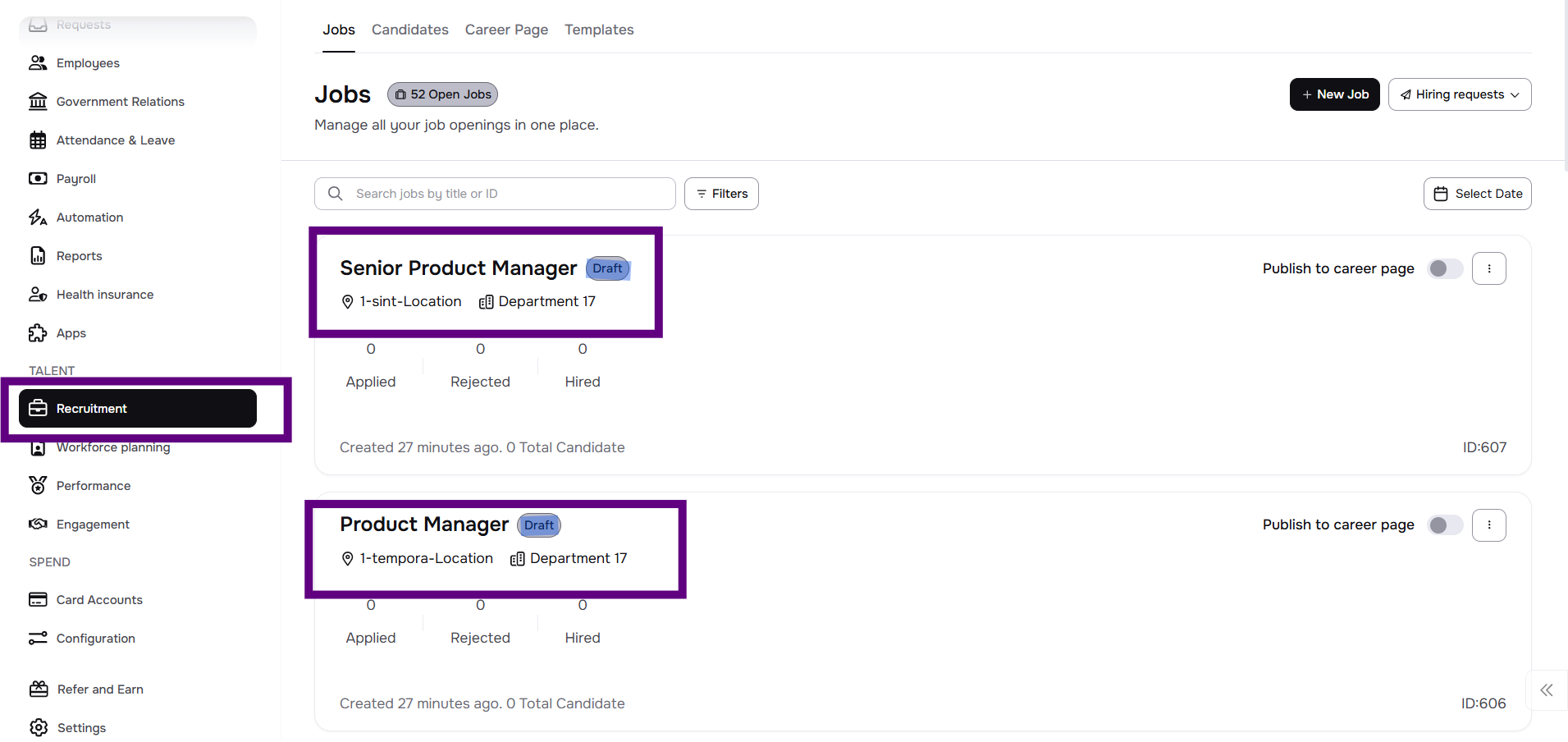 - Publish roles to the career page
