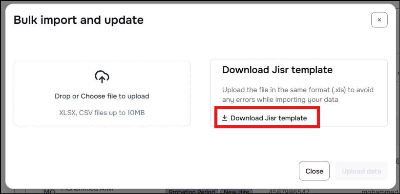 - After you have filled in the required data in the file, upload it in the previous window to add more than one employee at once