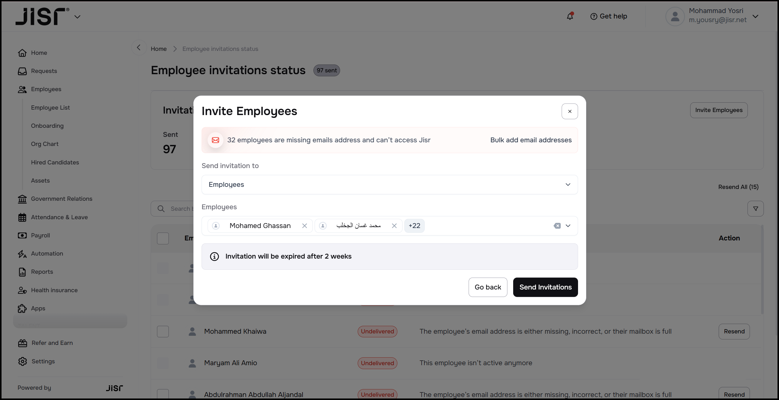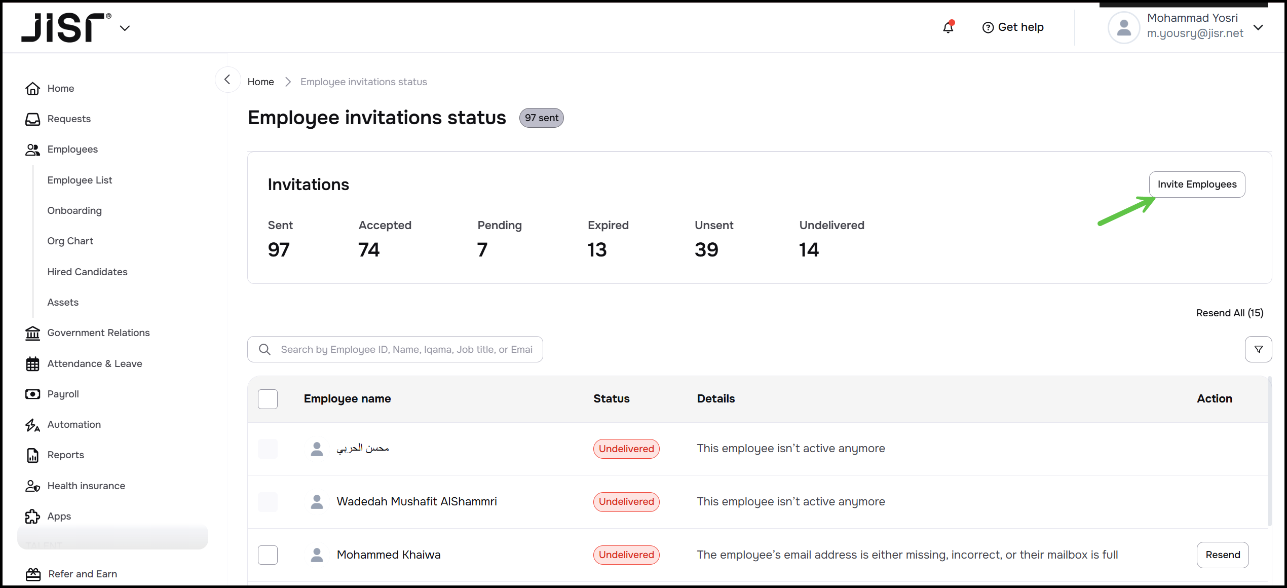 Remove completed invitations: Once an employee successfully logs in for the first time, their invitation will automatically disappear from the list, meaning the list is now only for those who have "not yet joined."