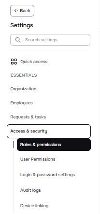 To ensure a smooth experience, we've reorganized where permissions live within the system. You can now easily access all Roles & Permissions settings directly from the main menu under the new "Access & Control" tab. This is your unified gateway for managing your teams and their access rights.